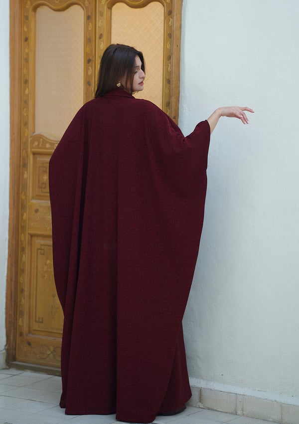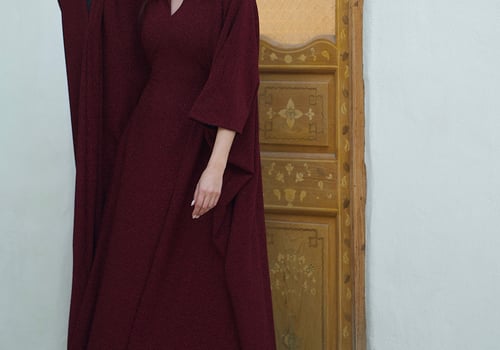 Velvet dress with a chiffon bisht and em...
