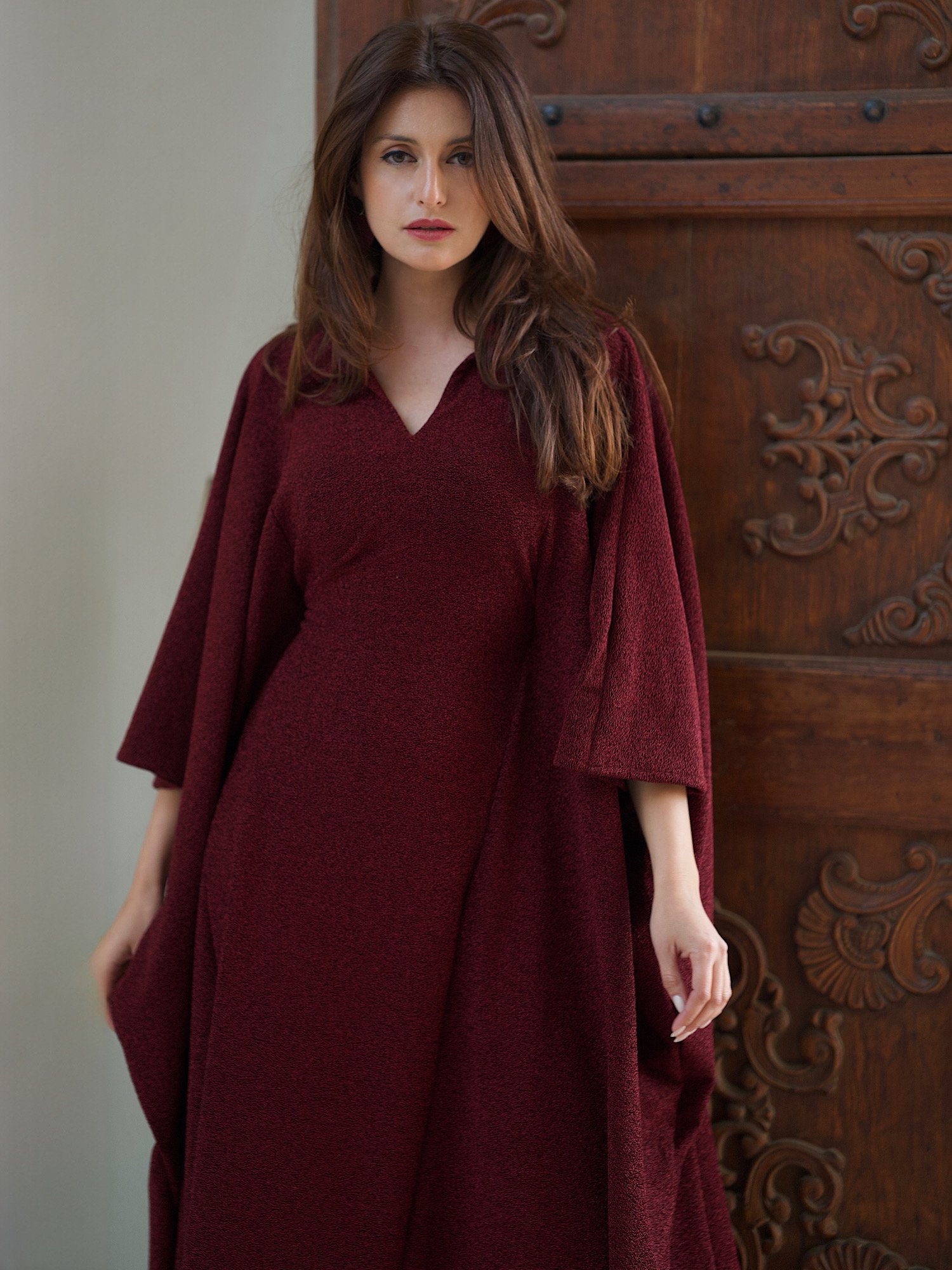 Velvet kaftan with embroidery sleeve