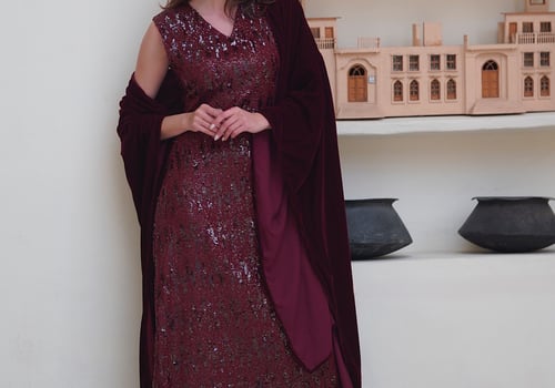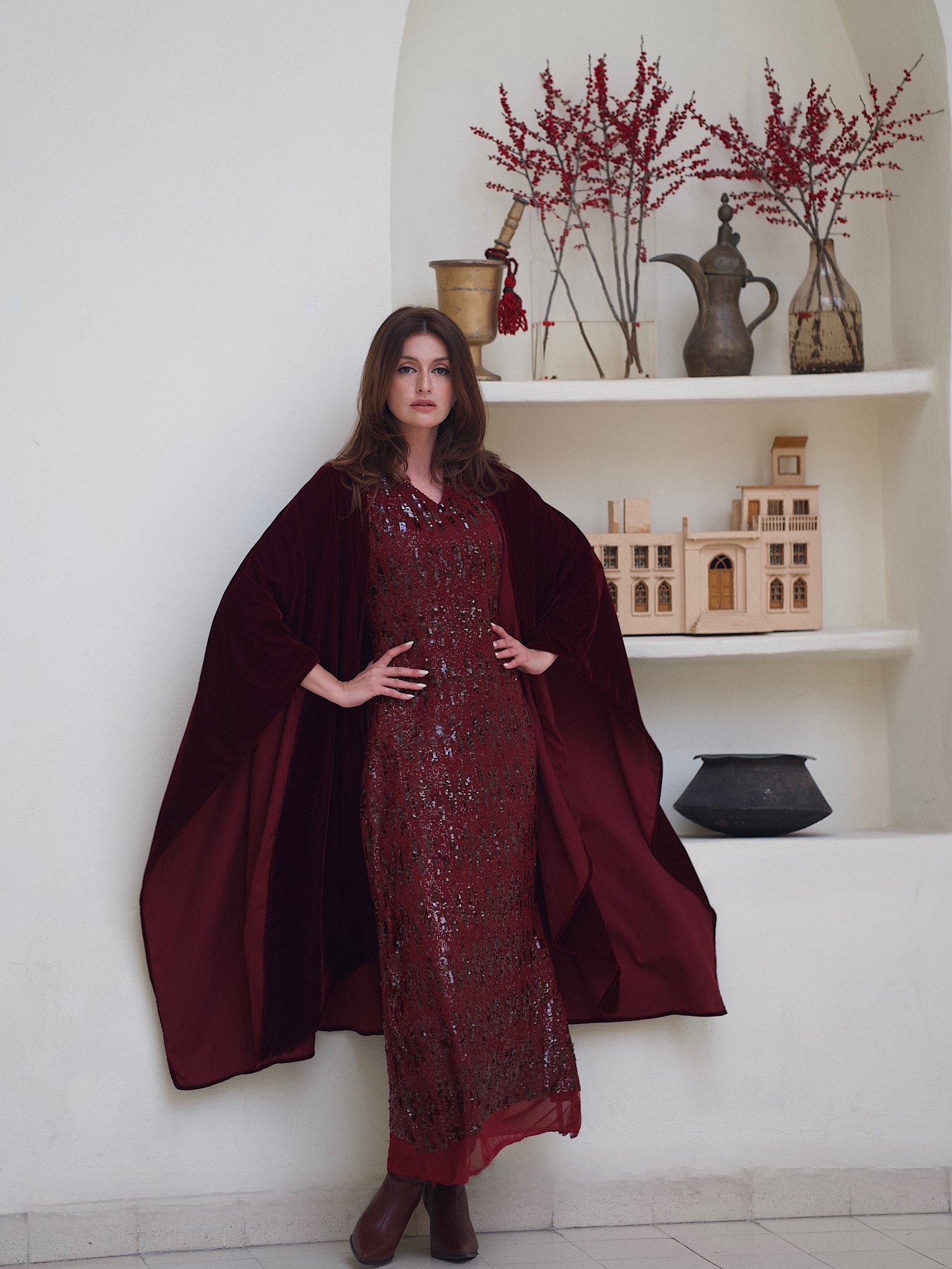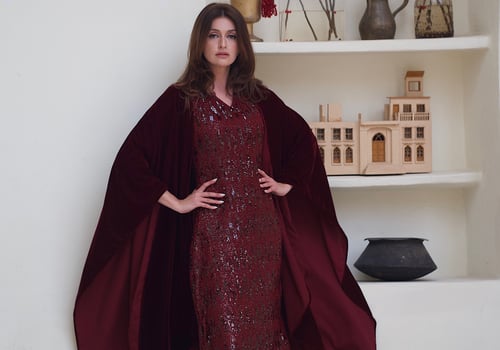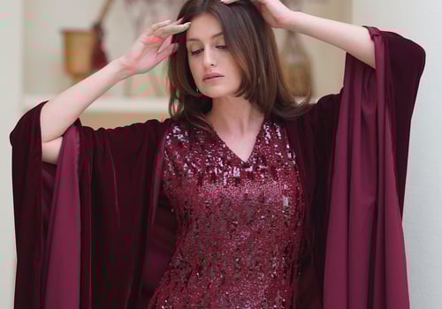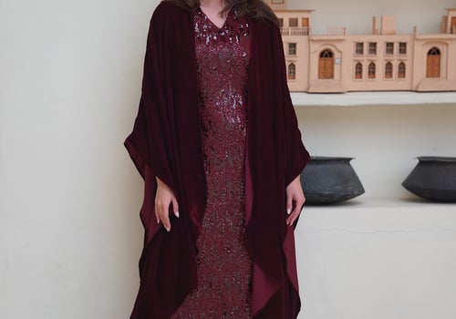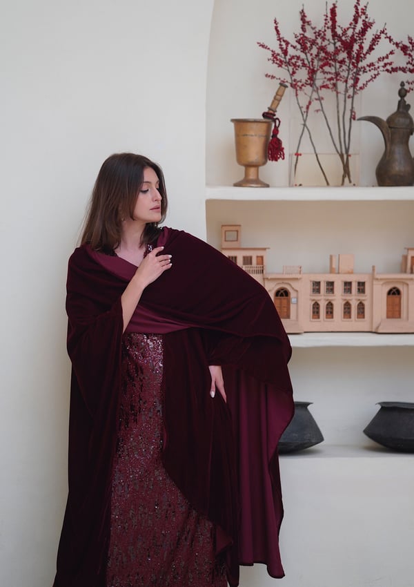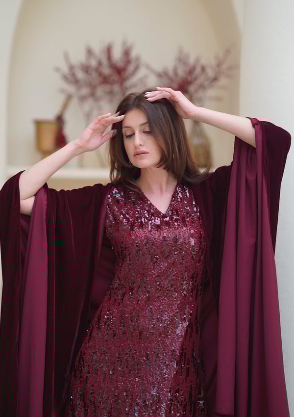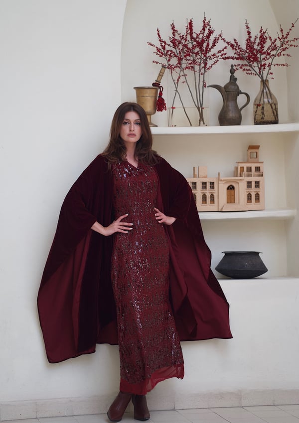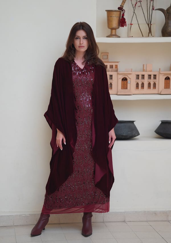 Sequin dress with a velvet bisht